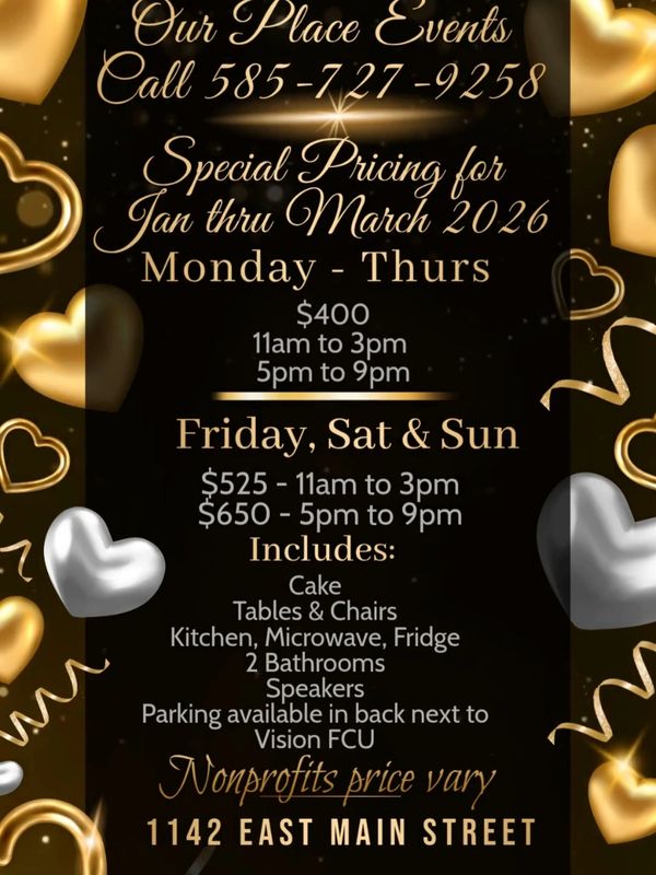 At Our Place Is Your Place we will make sure you have a memorable experience. We look forward to planning your next occasion, from youth educational training classes, graduation dinner celebrations, wedding receptions to business conferences and holiday parties at Our Place. Our passion is helping families celebrate their joyous occasion and bringing everyone together!